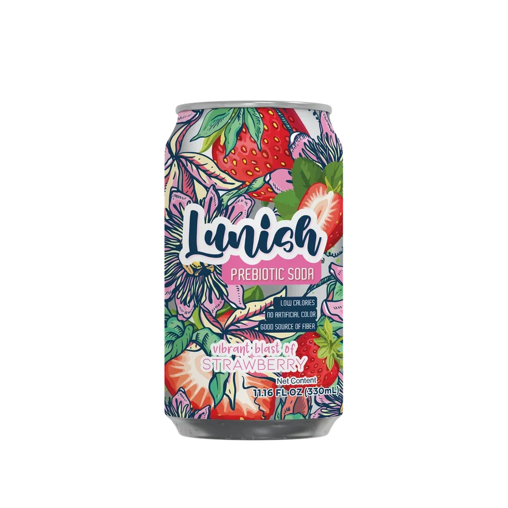 LUNISH Strawberry Prebiotic Soft Drink, Single-Serve Can, 330 Ml, 12/Case