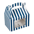 Restaurantware Bio Tek 4 x 2.50 x 2.50 Inch Paper Gable & Lunch Boxes, Blue & White, with Window, 25 Ct Package, 4/Case