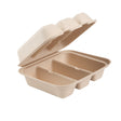 Restaurantware Pulp Safe 8 x 7.25 Inch Sugarcane & Bagasse 3-Compartment Taco Containers, Kraft, Clamshell, 50/Case