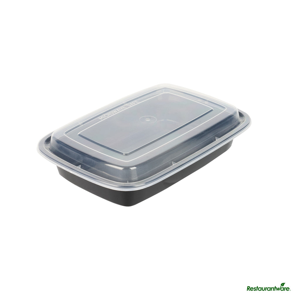 Restaurantware Asporto 28 Ounce Microwavable Plastic To Go Boxes, Black, 8.75 x 6 x 1.50 Inch, includes Clear Lid, 50/Case