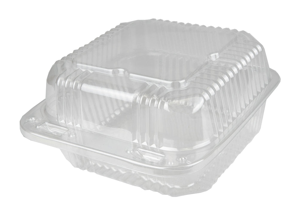 Durable Packaging 6 x 6 Inch Plastic Containers, Clear, Square, Hinged, 500/Case