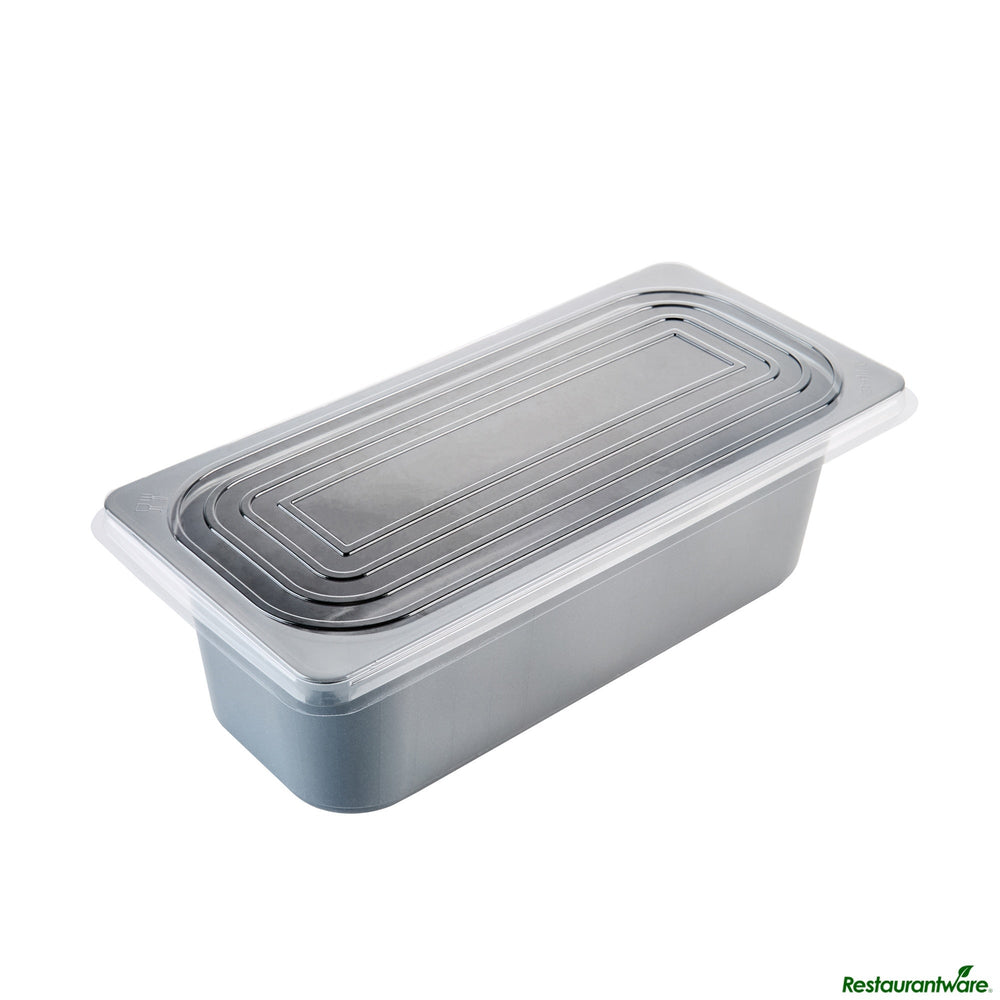 Restaurantware RW Base 5 Quart Plastic Ice Cream Containers, Gray, 13.50 x 6.50 x 4.75 Inch, includes Clear Lid, 25/Case