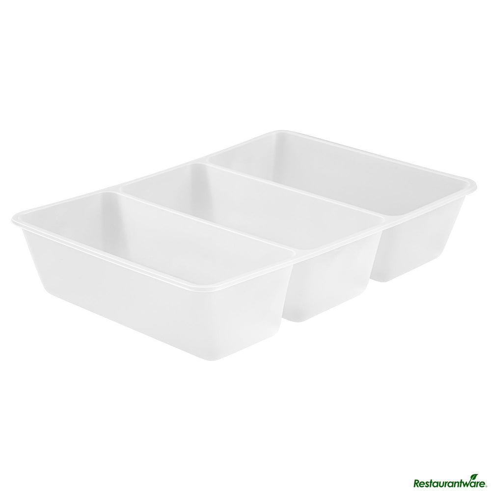 Restaurantware Bio Tek 40 Ounce Plastic 3-Compartment Taco Insert Trays, White, for Bio Take-Out Boxes, 50 Ct Package, 4/Case