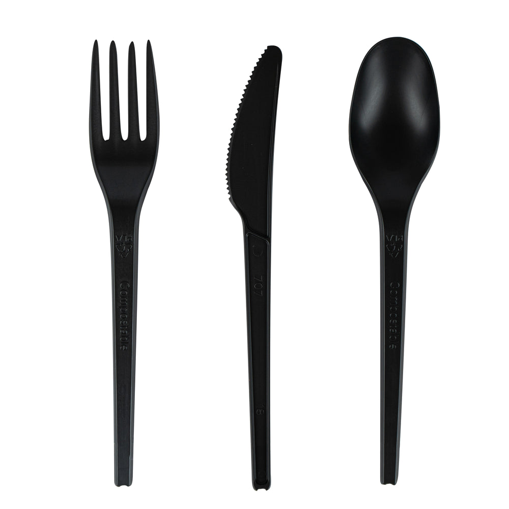 Cutlery Set, Fork/Spoon/Knife, Basic Nature 6.50 Inch, Plastic, Black, Heat Resistant, CPLA,290 - 1 EACH is backordered and will ship as soon as it is back in stock.