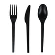 Restaurantware Basic Nature 6.50 Inch Plastic Fork/Spoon/Knife Cutlery Set, Black, Heat Resistant, CPLA, 290/Case