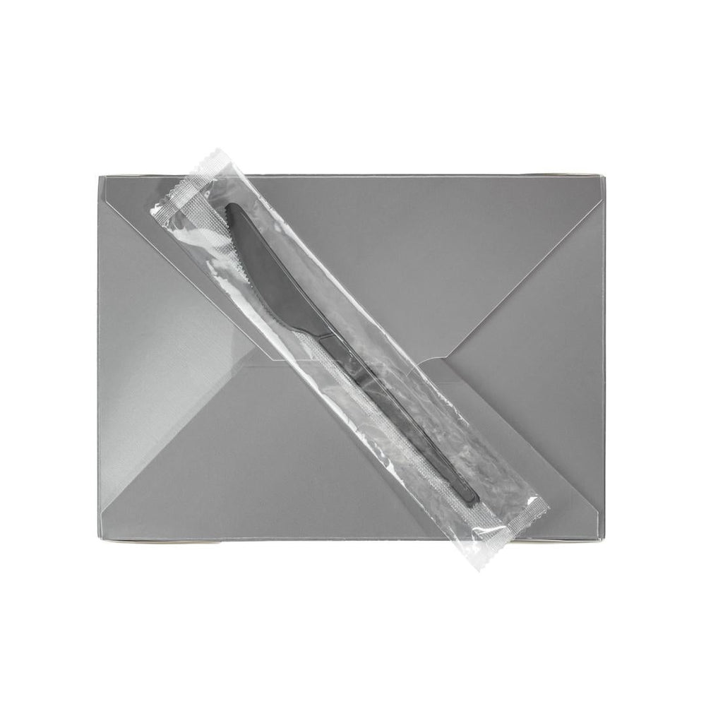 Knives, Plastic, Black, 6.5 Inch, Individually Wrapped, Compostable PLA,1 - 50 COUNT is backordered and will ship as soon as it is back in stock.
