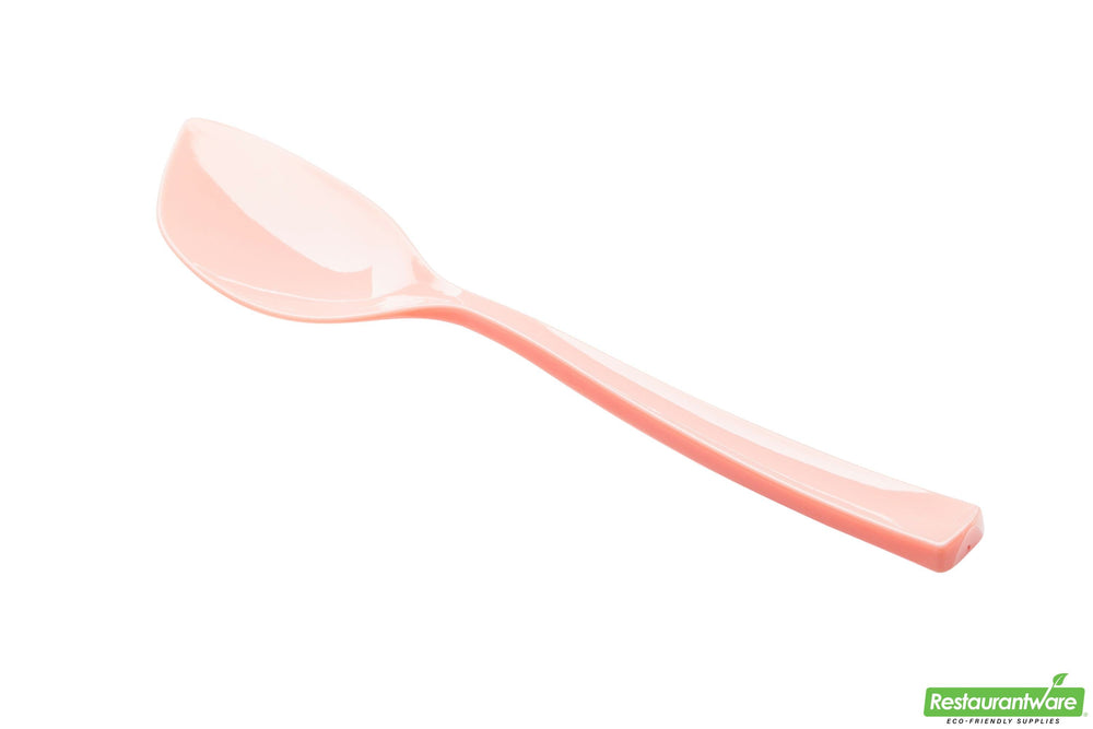 Restaurantware Petal Heavyweight Plastic Dessert Spoons, Coral, 4.5 Inch, 4.5 Linear Inch, 100 Ct Package, 1/Case