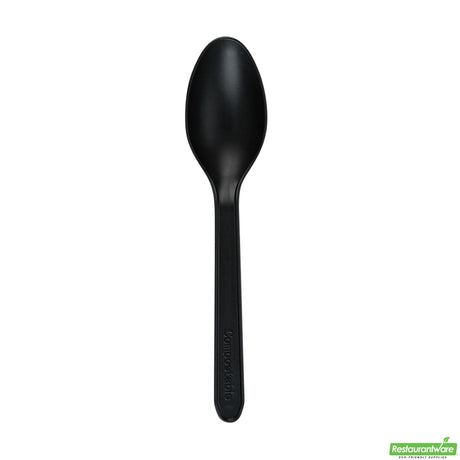 Spoons, Dessert, Basic Nature, Plastic, Black, 5 Inch, Heat-Resistant, CPLA,10 - 100 COUNT
