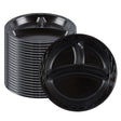 Restaurantware RW Base 10.25 x 10.25 x 0.75 Inch Microwavable Plastic 3-Compartment Plates, Black, Round, 50 Ct Package, 2/Case