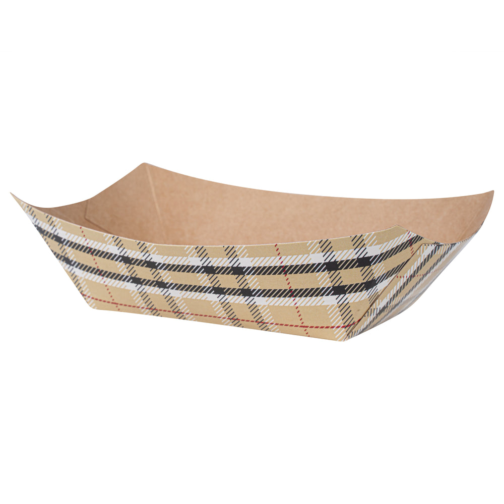 Restaurantware Bio Tek 3.25 x 2 x 1.50 Inch Paper Boats, Plaid, 6 Ounce, #40, 50 Ct Package, 8/Case