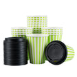 Restaurantware Restpresso 12 Ounce Paper Hot Cups, Green & White Stripe, Single Wall, 3.50 x 3.50 x 4 Inch, with Black Lid, 20 Ct Package, 20/Case