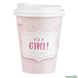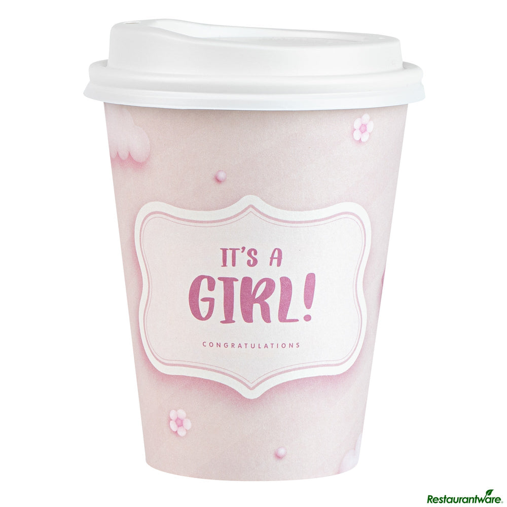 Restaurantware Restpresso 12 Ounce Paper Hot Cups, It's a Girl, Single Wall, 3.5 x 3.5 x 4.75 Inch, with White Lid, 20/Case