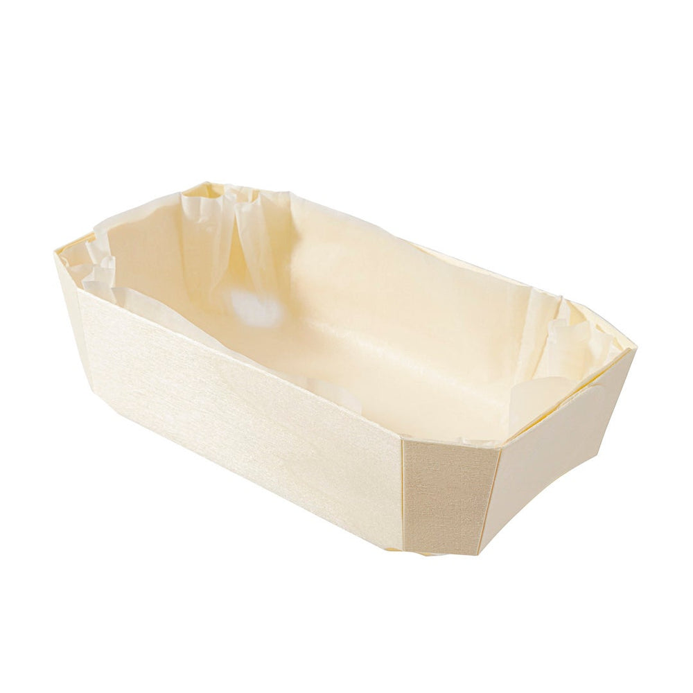 Restaurantware 7.25 x 4.5 x 2.25 Inch Wood Baking Boxes, Natural, with Paper Liners, 100 Ct Box, 1/Case