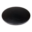 Beautify and serve delectable cakes with our Pastry Tek Round Black Cardboard Cake Drum Board. The covered edges of this cake baseboard instantly upgrade the look of cake presentations making it an ideal base to cover with fondant. Crafted from corrugated cardboard, this black cake board can strongly support heavy cakes without bending or breaking. Sturdy and reliable, this cake cardboard base is great for icing a cake on a spinning cake stand or for easily transporting a cheesecake to an event. With a grease-resistant design, the cake board doesn't absorb oils, avoiding unsightly blotches. Featuring a sophisticated black finish, this cake drum attractively highlights intricate icing designs. Conveniently disposable, this 12-inch cake drum is disposable and provides a quick and easy cleanup.