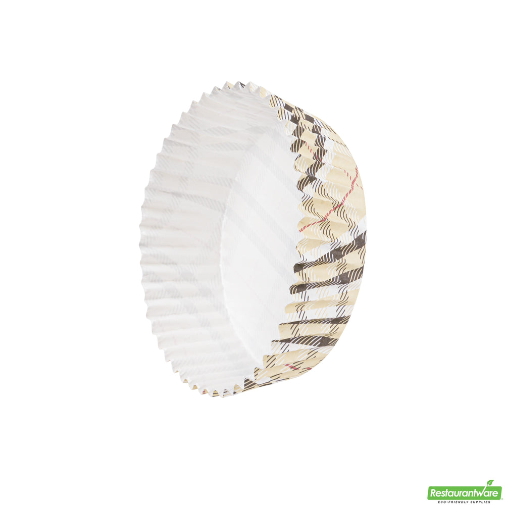 Restaurantware 4 Ounce Paper Baking Cups, Plaid, Ridged, 3.50 x 3.50 x 1 Inch, Round, 200/Case