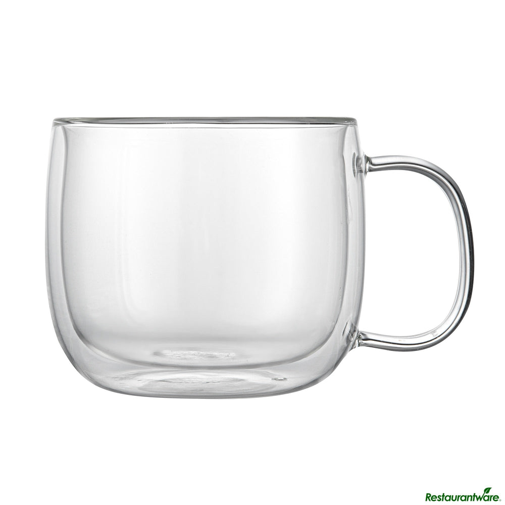 Restaurantware Forma Professional 17 Ounce Coffee Mugs, Double-Wall, Borosilicate, with Handle, 5.50 x 5.50 x 3.75 Inch, 2/Case