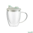 Mugs, Travel, 12 Ounce, Glass, Double Wall, with Handle & Gray and Green Lid,10 - 1 EACH is backordered and will ship as soon as it is back in stock.