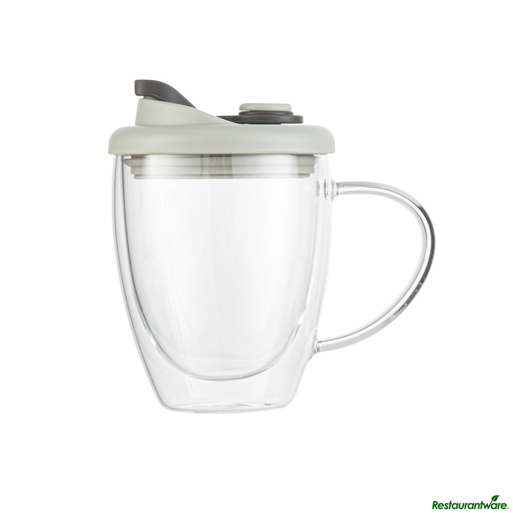 Restaurantware Forma Professional 12 Ounce Travel Mugs, Double-Wall, Borosilicate, includes Gray Lid, with Handle, 2 Pc, 1/Package