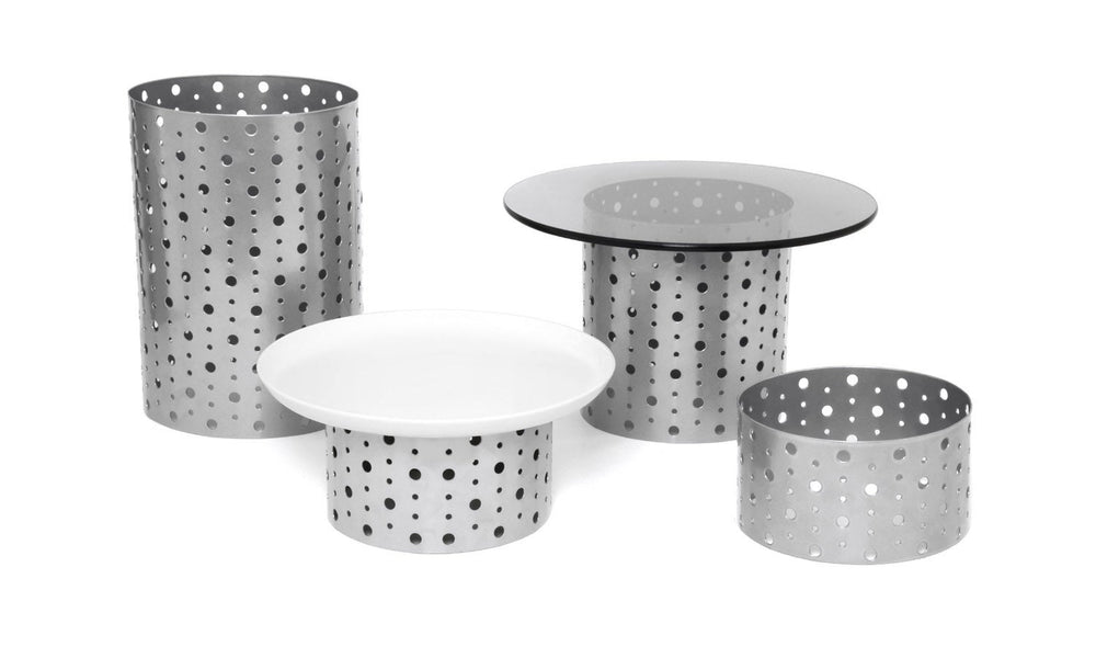 Front of the House 4 Piece Cylinder Buffet Building Blocks Dot Riser Sets, Stainless Steel, 2/Case
