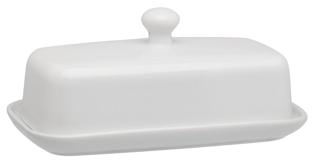 A touch of elegance for your table. This HIC Kitchen Porcelain Butter Dish offers a refined way to serve and preserve butter. Its classic white design complements any table setting, while the included lid helps maintain freshness. Each dish measures 8 x 3.5 x 2.25 inches, and comes in a case of sixteen.