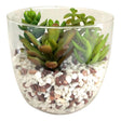 Restaurantware 5.5 x 5.5 x 5 Inch Plastic Faux Succulent Arrangement Table Art, in Glass Terrarium Vase, 1/Case