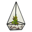 Restaurantware 8.5 x 5 x 3.5 Inch Plastic Faux Succulent Arrangement Table Art, in Triangular Black & Glass Terrarium, 1/Case
