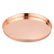 Serve your cocktails in style on this Bar Lux Copper-Plated Serving Tray. Featuring a gleaming copper-plated finish, this party serving tray is sure to add a delicate touch of elegance to any setting. Built with a sleek, round design and subtly raised edges, this bar tray is ideal for serving cocktails or hors d'oeuvres at bars, restaurants, cocktail parties, and catered events. Browse our coordinating copper-plated barware to complete the look. Constructed from high-quality stainless steel, this copper serving tray is incredibly strong and designed to withstand commercial use. Each of these round copper trays measures 12.6 inches in diameter. Handwash only. Shipped in a 1 count box.