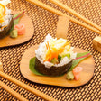 Our Natural Deco Bamboo Oval Serving Disks bring a natural element to your bite-sized treats. Crafted from sustainable bamboo, these modern small oval plates are commercially compostable. Featuring a convenient handle with an all-natural finish, these luxurious nature-friendly plates instantly upgrade the look of your tablescape or venue. Use these small bamboo serving dishes to elegantly present yellowtail sashimi at a restaurant, or to beautifully display mini chocolate eclairs at a catered event. Measuring 4 inches long by 3 inches wide, these disposable appetizer plates are ideal for serving miniature appetizers, hors d'oeuvres, desserts, and more. Available in a 100 count box.