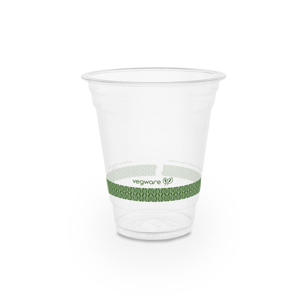 Vegware 12 Ounce Plastic Cold Cups, Clear with Green Decor, PLA, 50 Ct Package, 20/Case