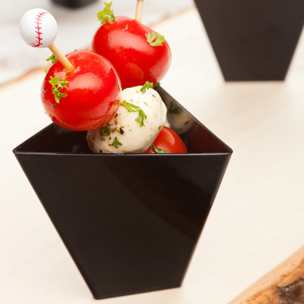 Cups, Dessert, 2.9 x 2.6 x 2.8 Inch, Plastic, Black Torcente Design, Tall Triangle, Heavyweight,1 - 100 COUNT is backordered and will ship as soon as it is back in stock.