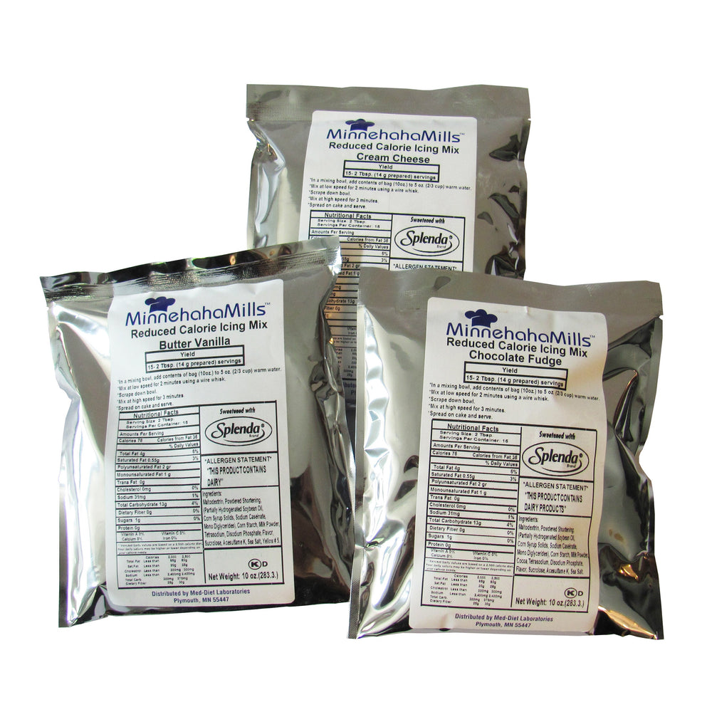 Minnehaha Mills Assorted Icing Mix, Chocolate/Buttercream Vanilla/Cream Cheese, Shelf-Stable, 12 Oz Package, 6/Case