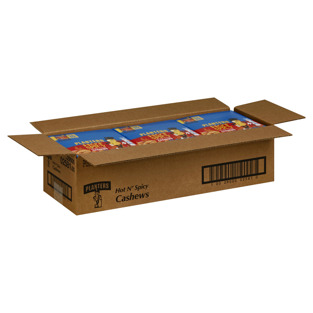Planters Hot & Spicy Cashews, 64 Gram, 10 Ct Package, 3/Case