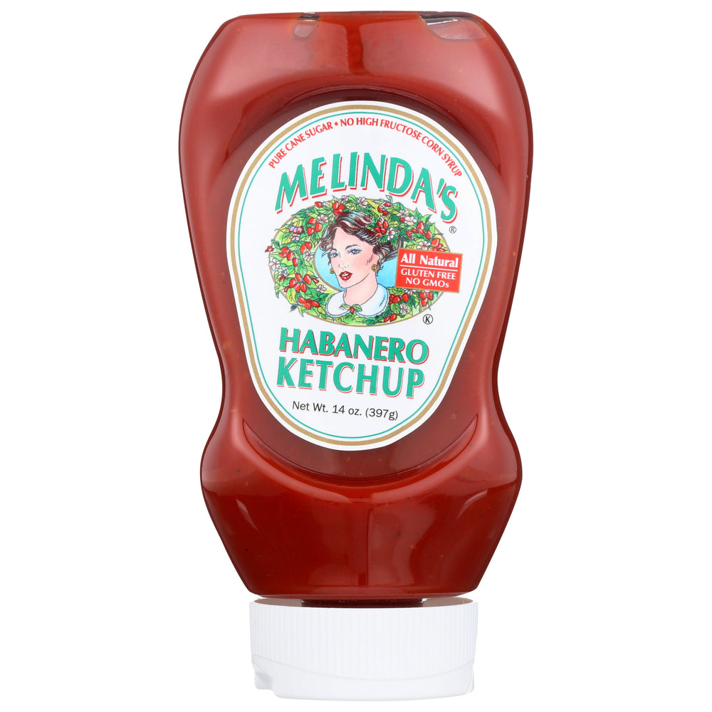 Melinda's Habanero Ketchup, Upside Down Squeeze Bottle, 14 Oz Bottle, 6/Case