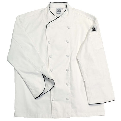 Jacket, Chef, Long Sleeve, Corporate, White with Black Piping, 4X, Poly/Cotton Blend,1 - 1 EACH