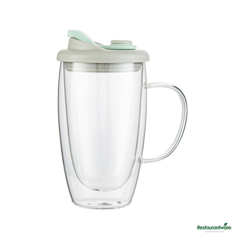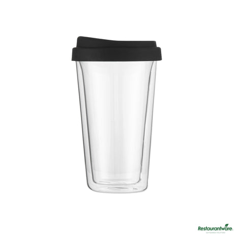Mugs, Travel, Forma Glass, 14 Ounce, Double-Wall, Borosilicate, includes Black Lid,10 - 1 EACH