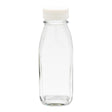 Bottle and sell fruit and vegetable juices, smoothies, iced coffee, and other thirst-quenching soft drinks in this clear square soda-lime glass bottle. Made for selling beverages retail, each bottle comes with a tamper-evident cap to keep contents sealed prior to purchase. The clear glass and wide mouth give each bottle a timeless classic milk bottle look, while the crystal clear glass showcases your beverages inside clearly. Ideal for bakeries, coffee shops, restaurants, cafes, and other establishments that bottle and sell their own soft drinks. This glass bottle with tamper evident cap is made to hold 12 ounces. Each bottle measures 2.2 inches in length, 2.2 inches in width, and 6.5 inches in height. Each French Countryside Square Glass Bottle with Tamper Evident Cap is shipped in bulk in a 10 count box.