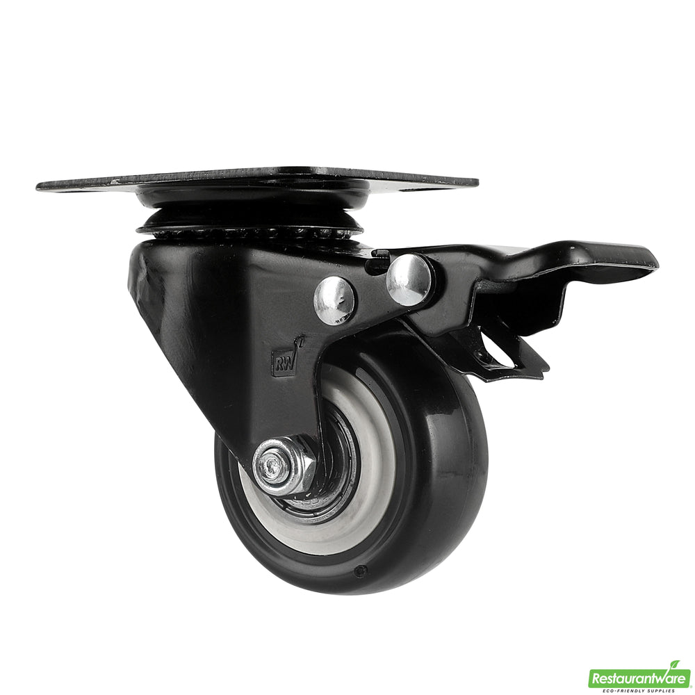 Restaurantware RW Hardware 2 Inch Swivel Plate Casters, Black, includes Breaks & Mounting Hardware, 4/Case
