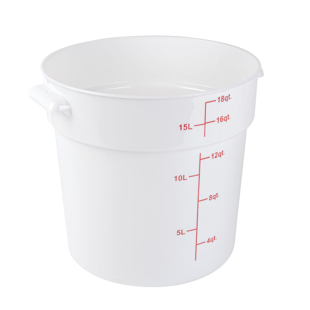 Restaurantware Met Lux 18 Quart Round Food Storage Containers, White, 12.25 x 12.25 x 12 Inch, with Red Volume Markers, 10/Case