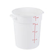 Restaurantware Met Lux 4 Quart Round Food Storage Containers, White, 7.25 x 7.25 x 8.50 Inch, with Red Volume Markers, 10/Case