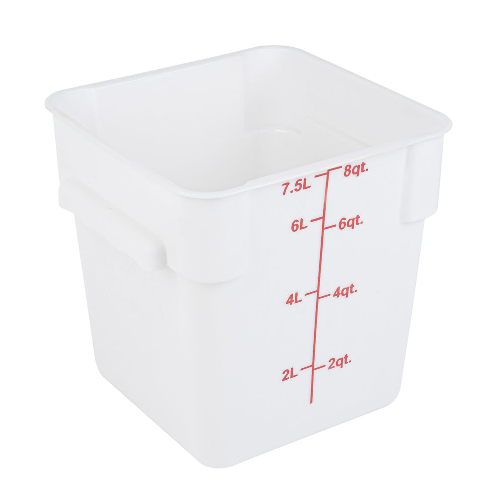Restaurantware Met Lux 8 Quart Square Food Storage Containers, White, 8.75 x 8.75 x 8.50 Inch, with Red Volume Markers, 1/Each