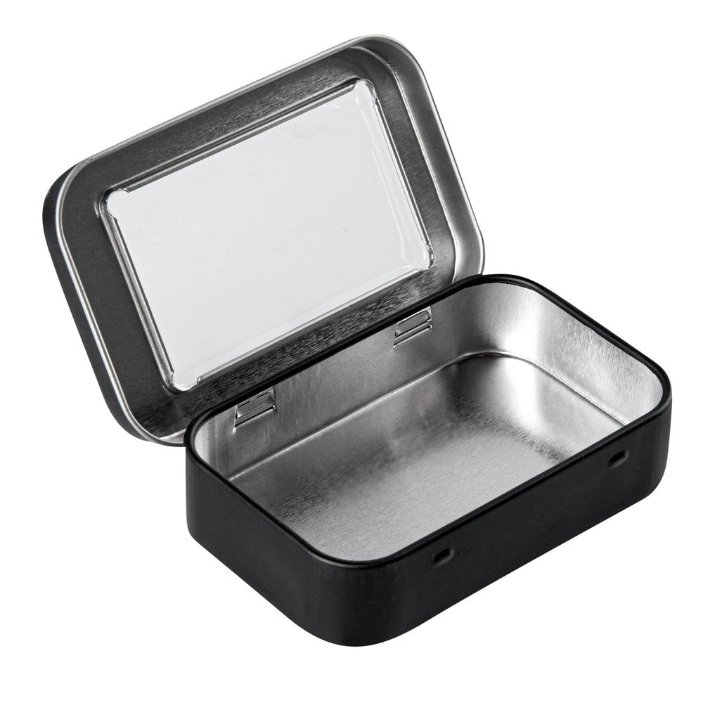 Containers, RW Base 2 Ounce, Black, Tin, Rectangular, with Window Lid,10 - 1 EACH is backordered and will ship as soon as it is back in stock.