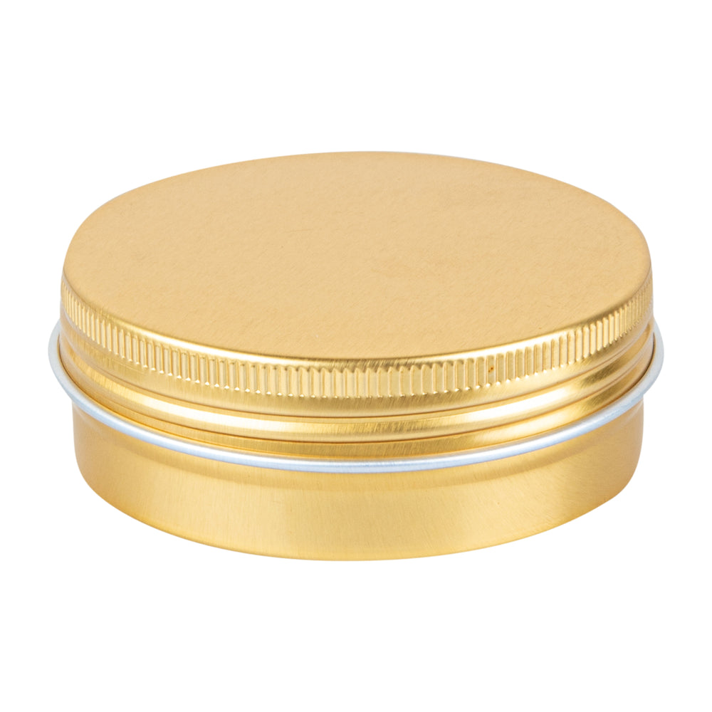 Restaurantware RW Base 2 Ounce Tin Containers, Gold, Round, with Screw Lid, 10/Case