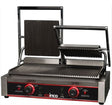 Winco Double Panini Grill, Stainless Steel, 120 Volt, with Cast Iron Grooved Plates, 1/Each