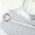 This sleek mirror-finish stainless steel ladle is the perfect serving spoon for soups, stews, and sauces. Constructed from the finest stainless steel, this soup ladle is made sturdy and durable. This ladle is also built with a hooked handle with the measurement clearly branded down the front for convenience and efficiency. Easy to use and easy to clean, this ladle is ideal for stirring, serving, and measuring. At 11.8 inches in length, and with a capacity of 2 ounces, this ladle is not only an efficient cooking utensil but a sleek and stylish one as well. You will receive one 2-ounce stainless steel ladle per order.