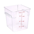 Conveniently store ingredients with our Met Lux 8-quart Square Clear Plastic Food Storage Containers. These plastic food storage containers have red volume markers in quarts and liters, providing your kitchen staff with a quick and effortless way to keep track of inventory. With built-in handles, these square food containers offer a safe and comfortable way to transport foods from the refrigerator to the prep area at your restaurant, diner, or food truck. Crafted from premium plastic, these durable food storage boxes are resistant to stains and odors to withstand everyday use at your foodservice establishment. With a clear finish, these plastic food containers allow employees to easily identify products inside containers. These kitchen storage boxes are safe for commercial dishwasher use to streamline your cleaning process at the end of the day. Great for enhancing organization, these freezer-safe containers are stackable for quick and simple storage in your prep room.