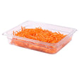 Keep your fresh ingredients neatly stored in our Restaurantware Full-Size Clear Food Pans. Designed with a 6-inch depth, this food storage box can contain a substantial amount of prepped ingredients. With quart and liter graduations, this cold food bin allows you to easily track inventory. The crystal-clear finish of this clear food pan displays your ingredients for quick identification during busy shifts. Made from premium plastic, this cold food box isn't easily scratched and is shatterproof, making it perfect for everyday use at your restaurant. To keep cold foods chilled, this restaurant food container is freezable and can withstand temperatures from -40F to 210F. Great for speeding up your cleaning process, this food pan can be put in the dishwasher.