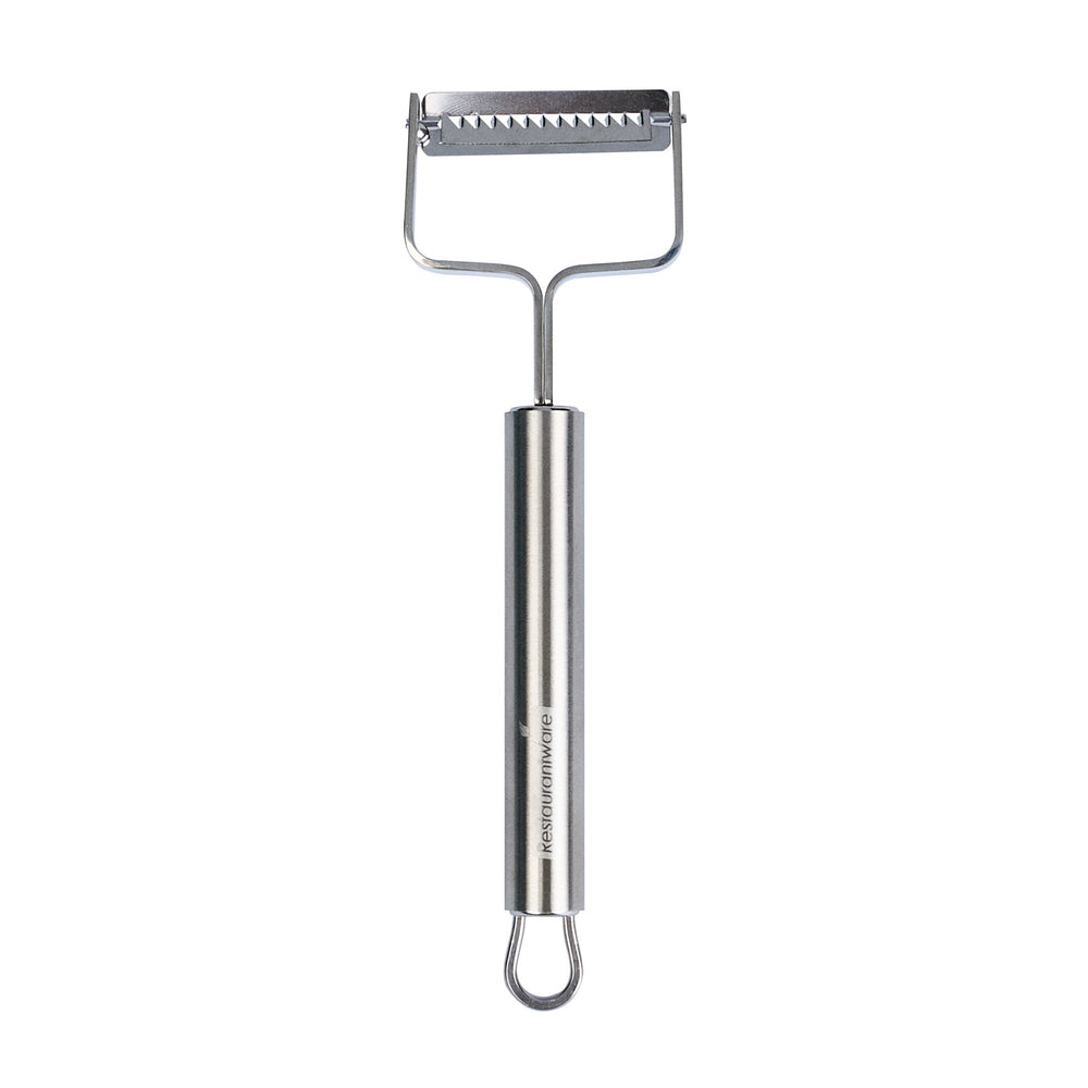 Equip your kitchen with the Restaurantware German Standard Julienne Peeler, designed for precision and efficiency. This Y-shaped vegetable peeler features a durable stainless steel construction and a 6.50-inch julienne blade. Perfect for creating uniform vegetable strips, this tool is an essential addition to any professional or home kitchen. Its ergonomic design ensures comfortable handling and effortless peeling.