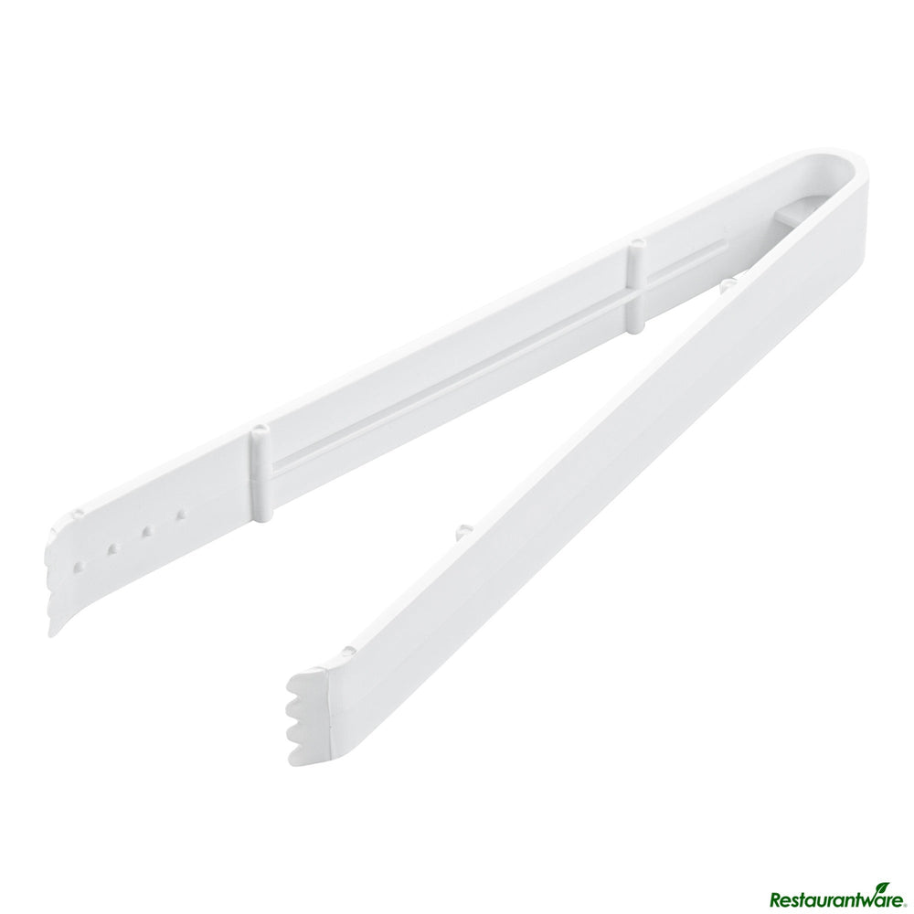 Restaurantware Cater Tek Heavy-Duty 9 Inch Serrated Tongs, Plastic, White, 10/Case
