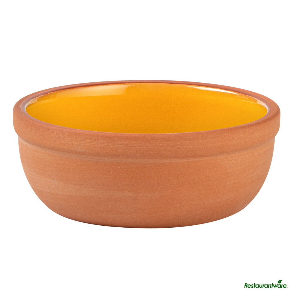 Restaurantware Terra Tek 5 Ounce Terracotta Cazuela Bowls, Yellow Glazed Interior, 4 x 4 x 1.50 Inch, Oven-Safe, 2/Box
