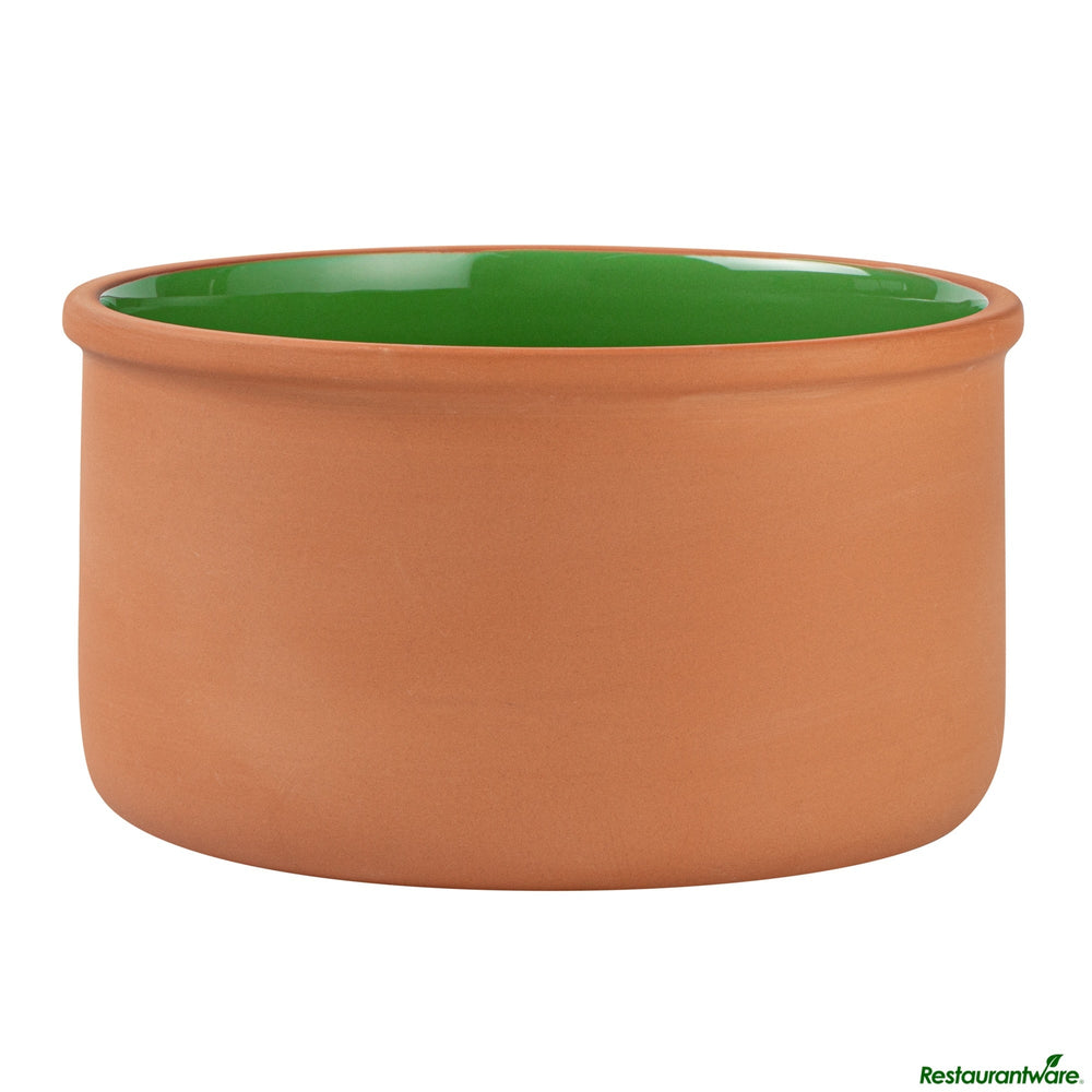 Restaurantware Terra Tek 68 Ounce Terracotta Cazuela Bowls, Green Glazed Interior, 7.50 x 7.50 x 4 Inch, Oven-Safe, 2/Box